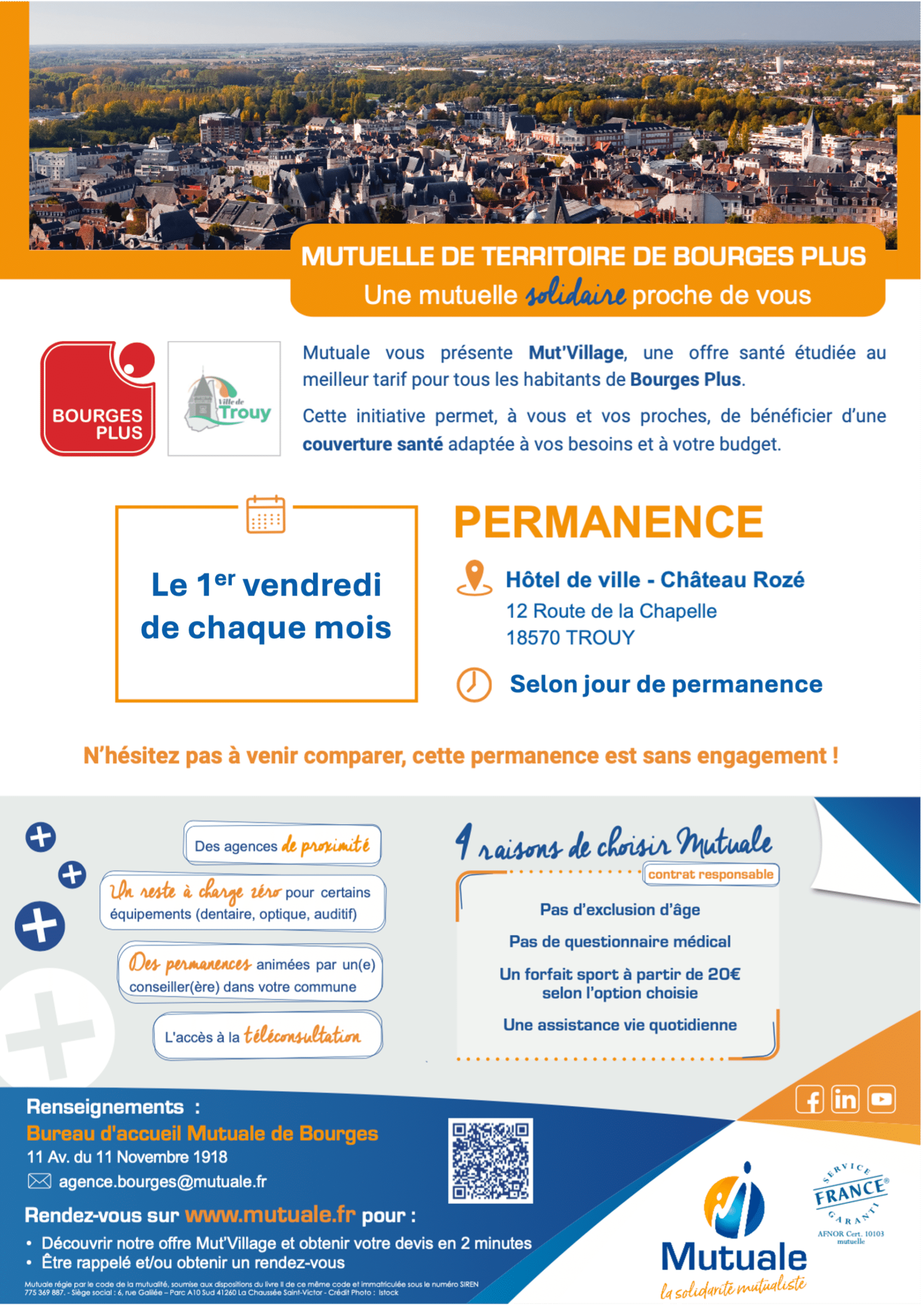 Vous pouvez également être reçu dans les locaux de MUTUALE, 11 avenue du 11 novembre à Bourges.