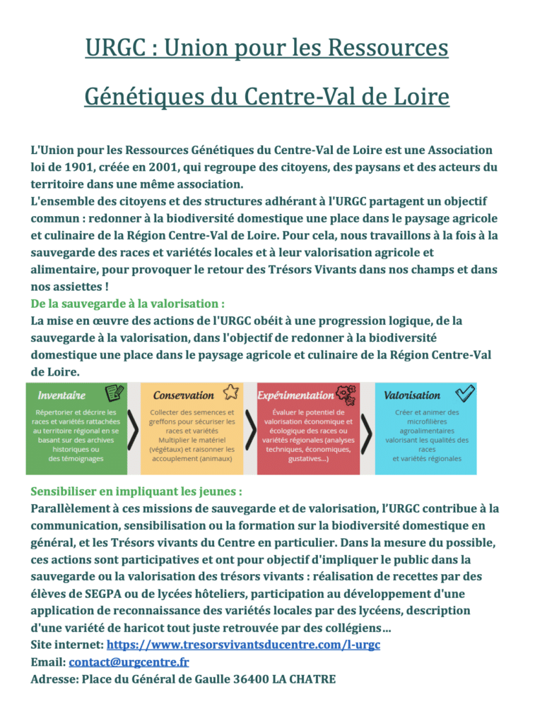 URGC : Union pour les Ressources Génétiques du Centre-Val de Loire.Préserver et transmettre les légumes régionaux